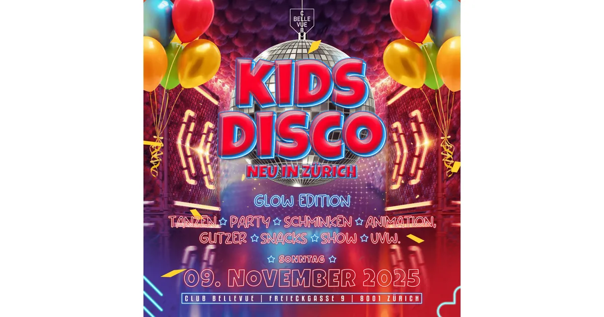 KIDS PARTY - @ CLUB BELLEVUE - GLOW EDITION, 9. Nov. 2025, 14:00 |
