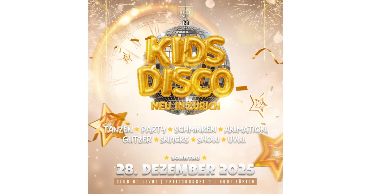 Am Sonntag, 28 Dezember, wird der Club Bellevue von 14 bis 18 Uhr wieder zur coolsten Kinderdisco der Stadt! 🎉✨