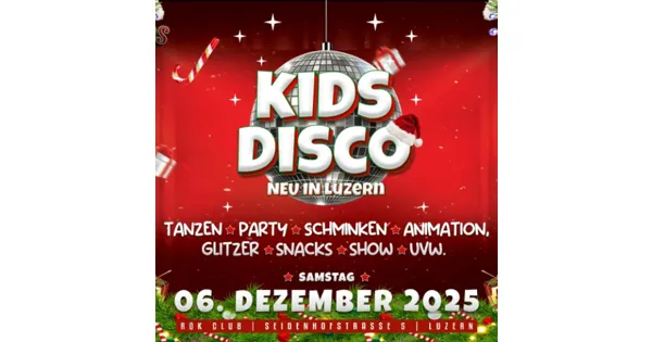 Am Samstag, 6. Dezember verwandelt sich der Rok Club Luzern von 14 bis 18 Uhr in die fröhlichste Kinder-Weihnachtsdisco der Stadt! 🎶💃🕺