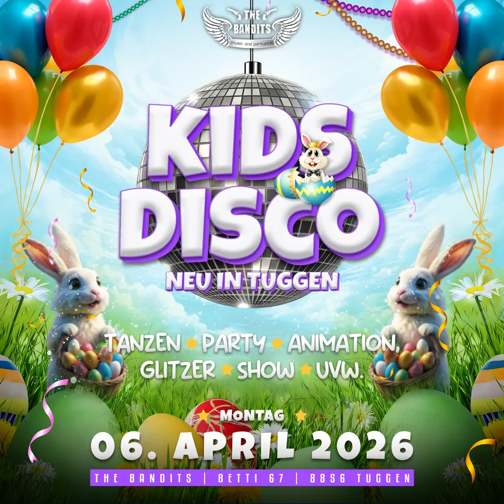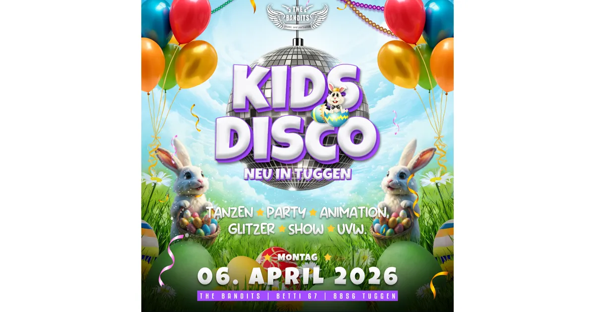Die Plätze sind limitiert – sichert euch rechtzeitig eure Tickets und feiert mit uns die erste grosse Oster-Kinderdisco in Tuggen! 🌸✨